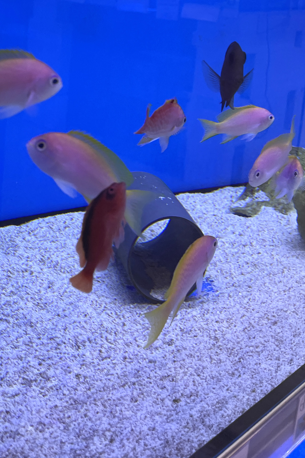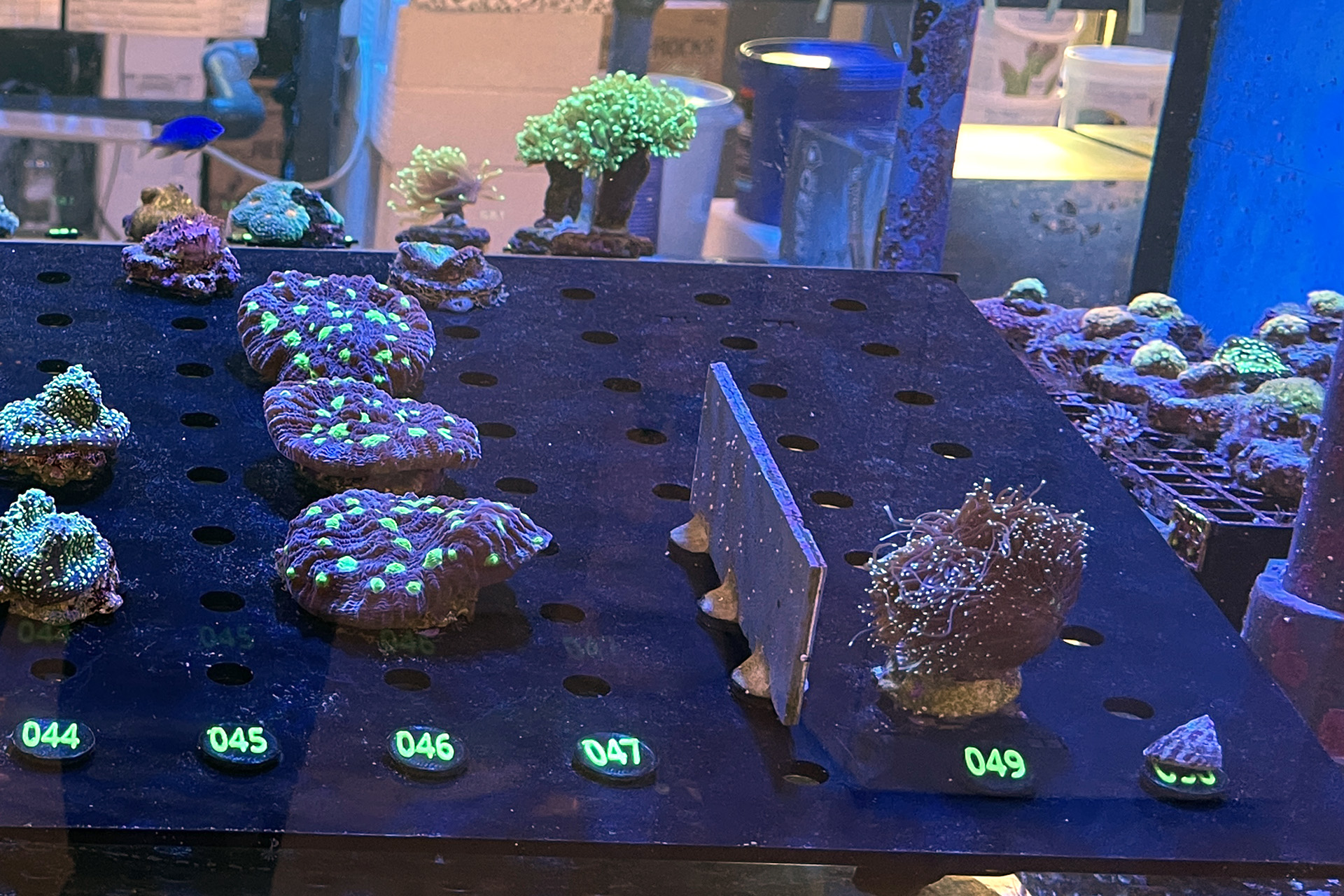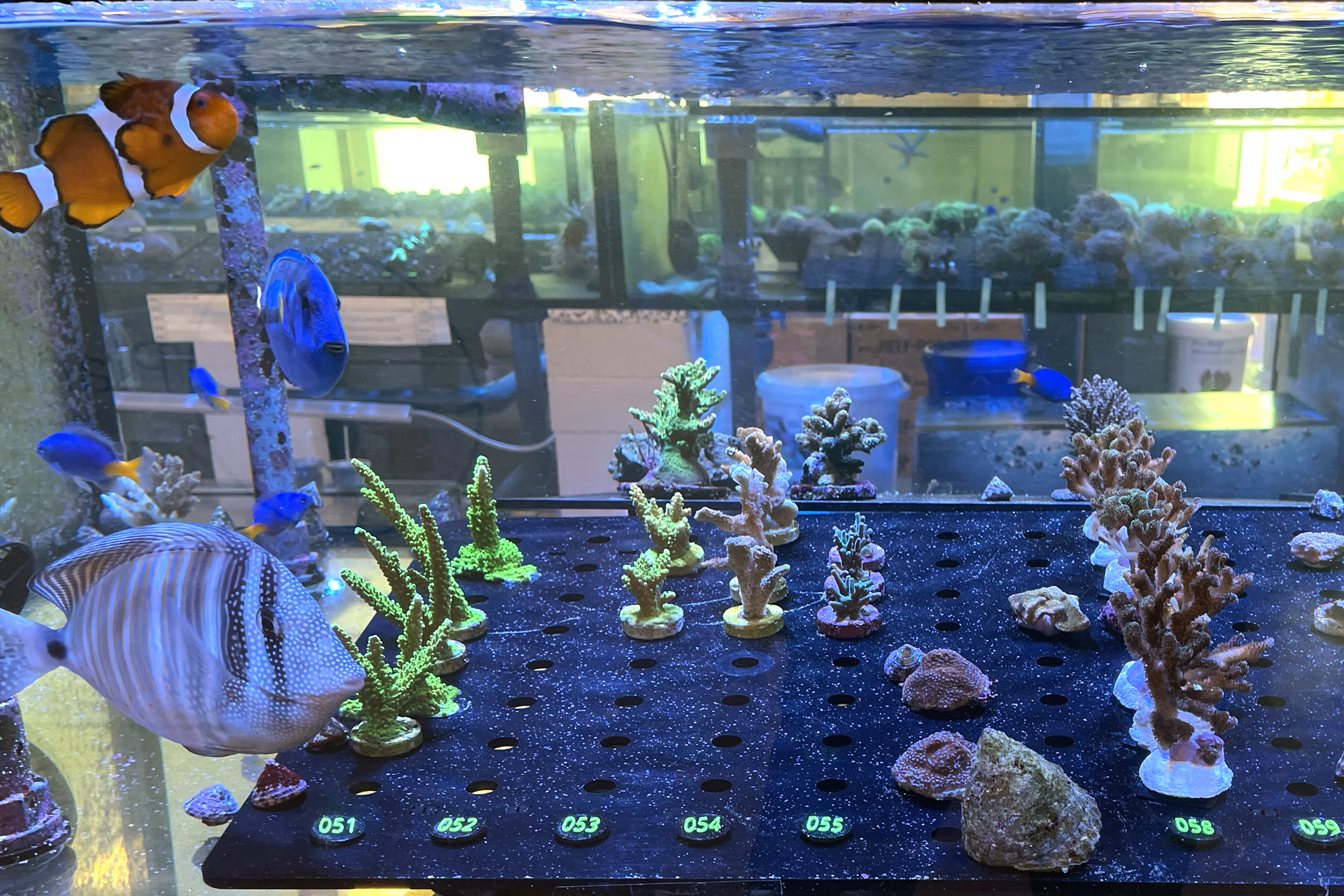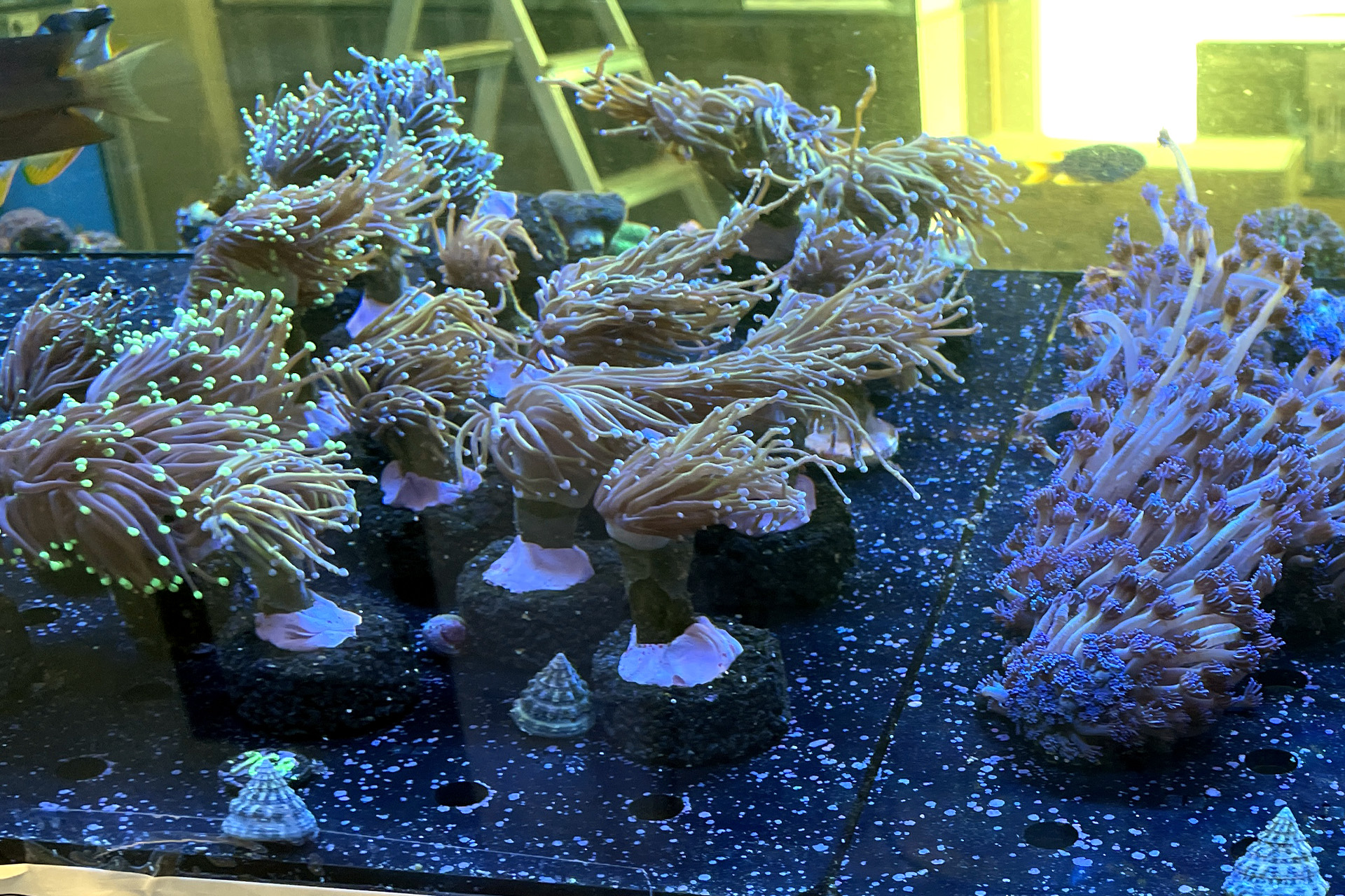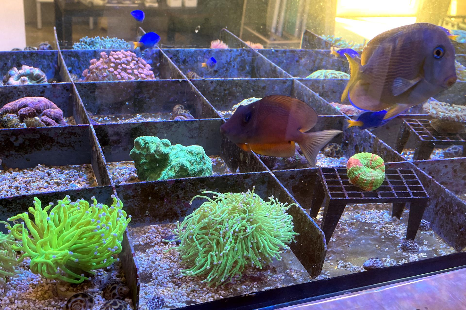 finale Umzug wird. Denn dann werden endlich Fachgeschäft und Versandhandel um selben Platz sein. Auf Einladung von Michael Schinhammer hatten wir am 10 Mai noch ein letztes Mal die Chance einen Blick in die alten Räume in Neumarkt werfen zu können. Ein letzter Blick in den Verkaufsraum, das 5-Meter-Becken und die Verkaufsanlagen, bevor alles nach Hohenburg umzieht. Parallel war ja die Herrichtung der neuen Räume schon in vollem Gange. Alles was neu zu bauen war oder nicht unbedingt für das bestehende Geschäft benötigt wurde, war bereits mitten im Umzug. Vielen Dank auf jeden Fall an Michael, dass er sich die Zeit genommen hat für einen sehr angenehmen Aufenthalt bei PlanktonPlus und für den Gedankenaustausch zu den bestehenden und der Gestaltung der neuen Räume. Hier jetzt für euch noch einmal letzte Eindrücke aus den alten Räumen Im Zwiesel 1 in Neumarkt. Imk Zentrum stehr die große Korallenanlage. An der großen Fensterseite einige Systemaquarien zur Ansicht. An den gegenüberliegenden Seiten zum Eingang befand sich zum einen die Fischanlage und zum anderen das große 5-Meter-Becken. Wenn man vom Eingang am Verkaufstresen vorbei geht, kann man sich einen guten Überblick über das Trockensortiment verschaffen.