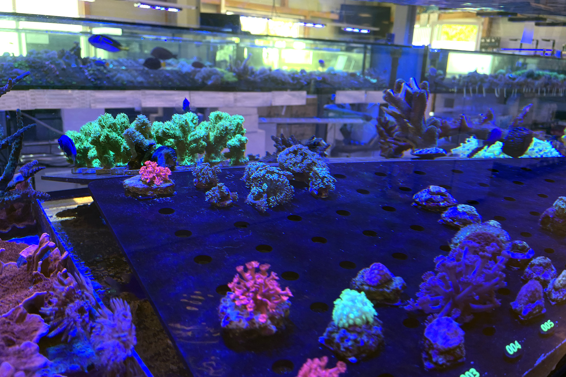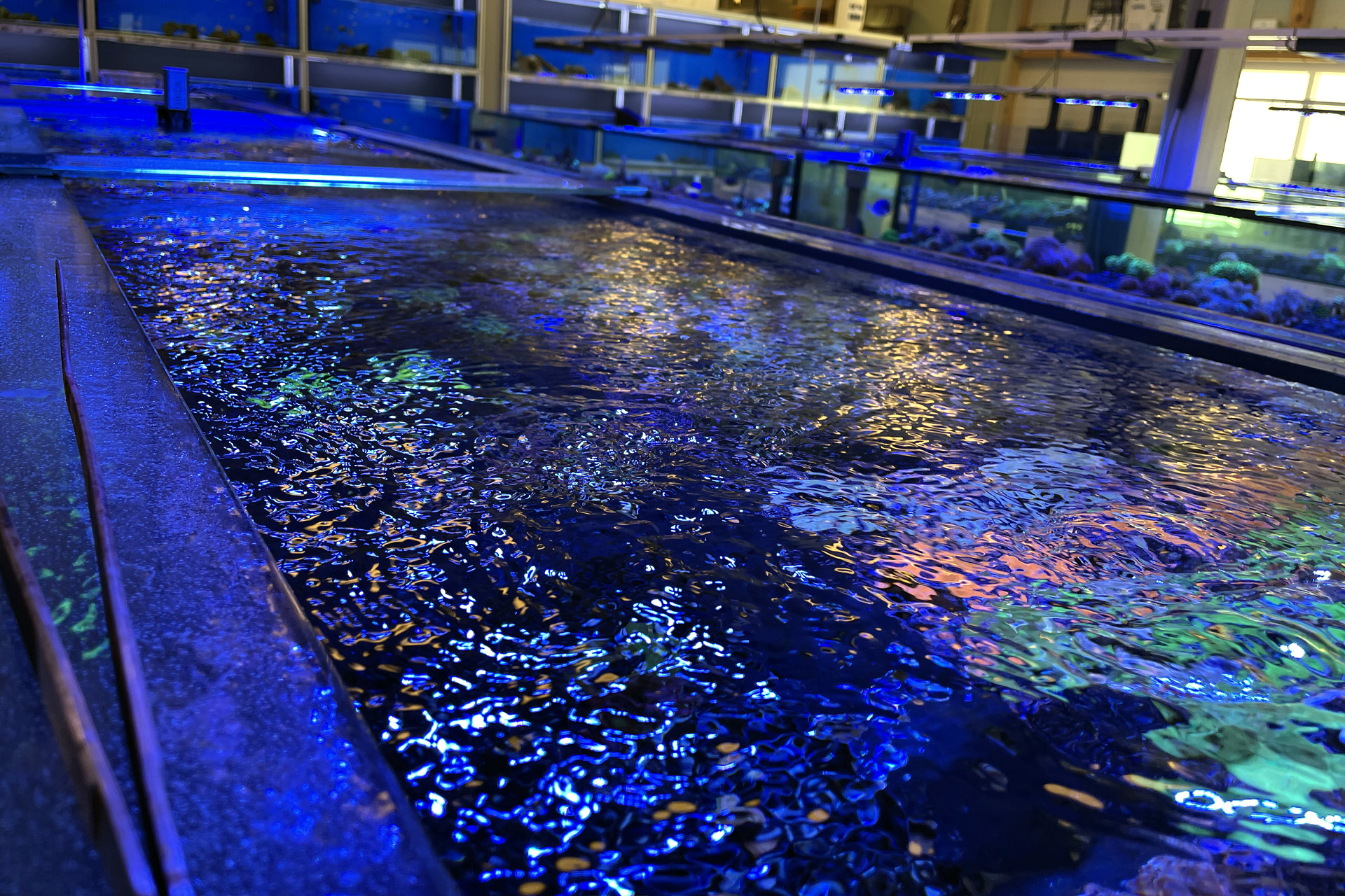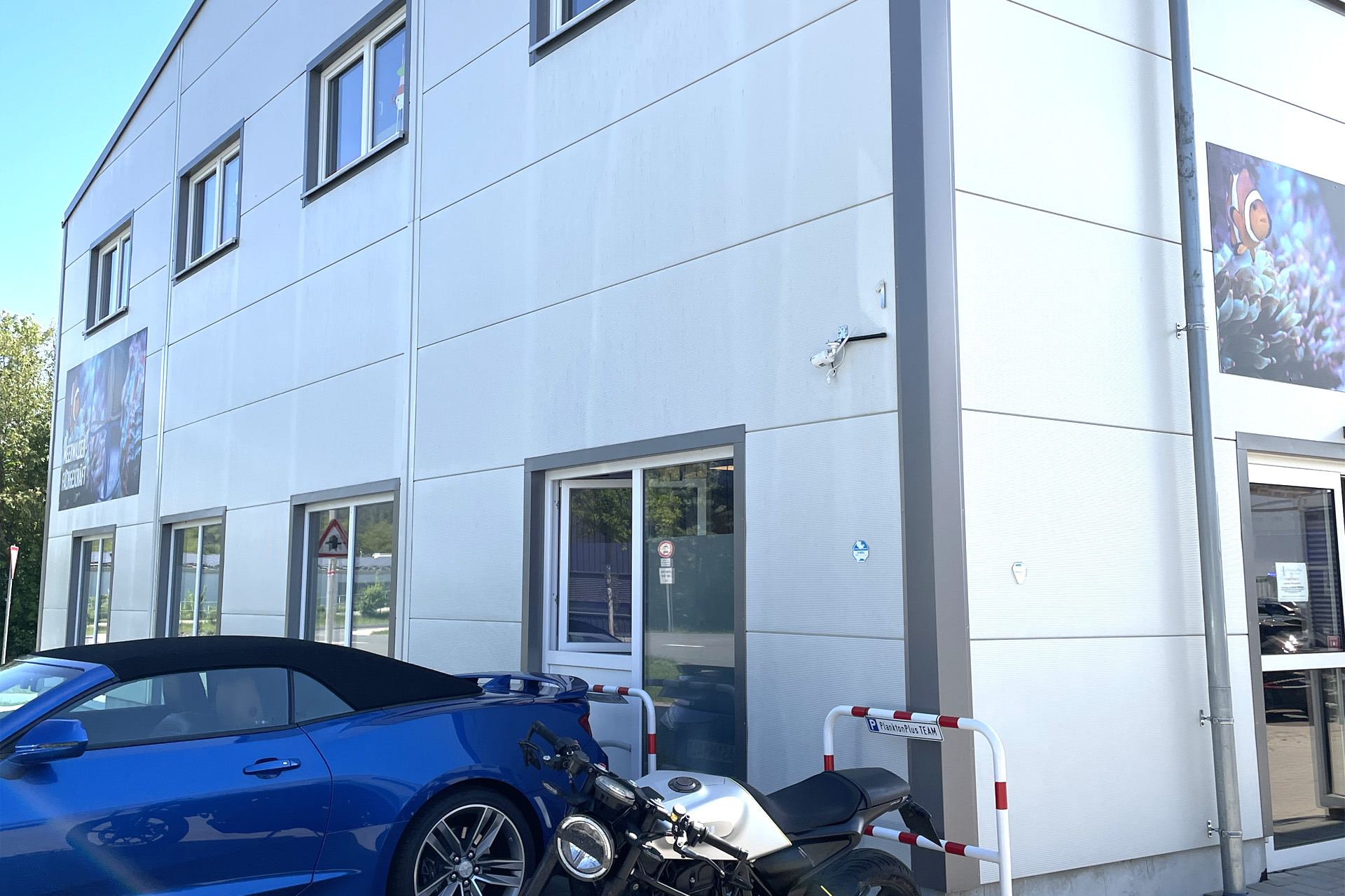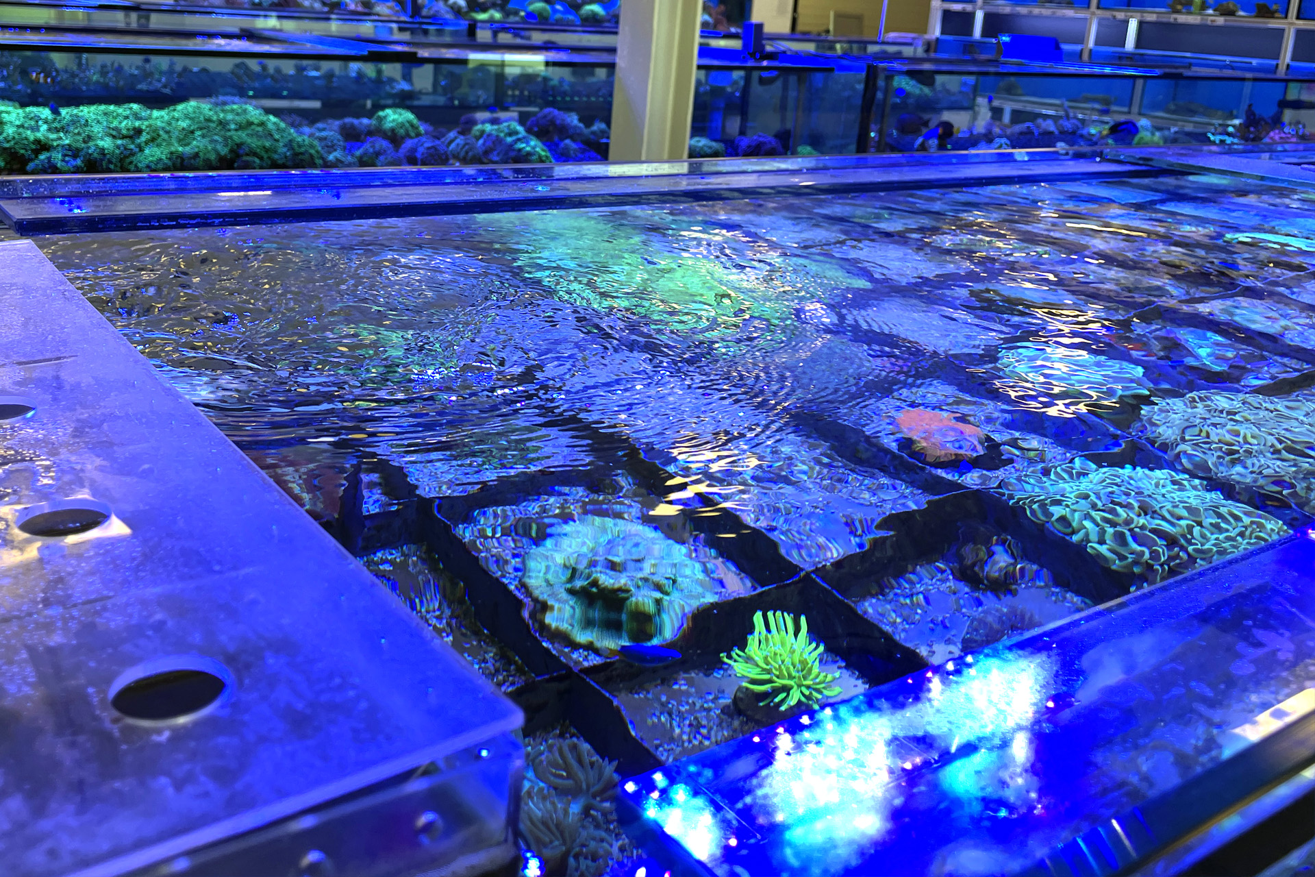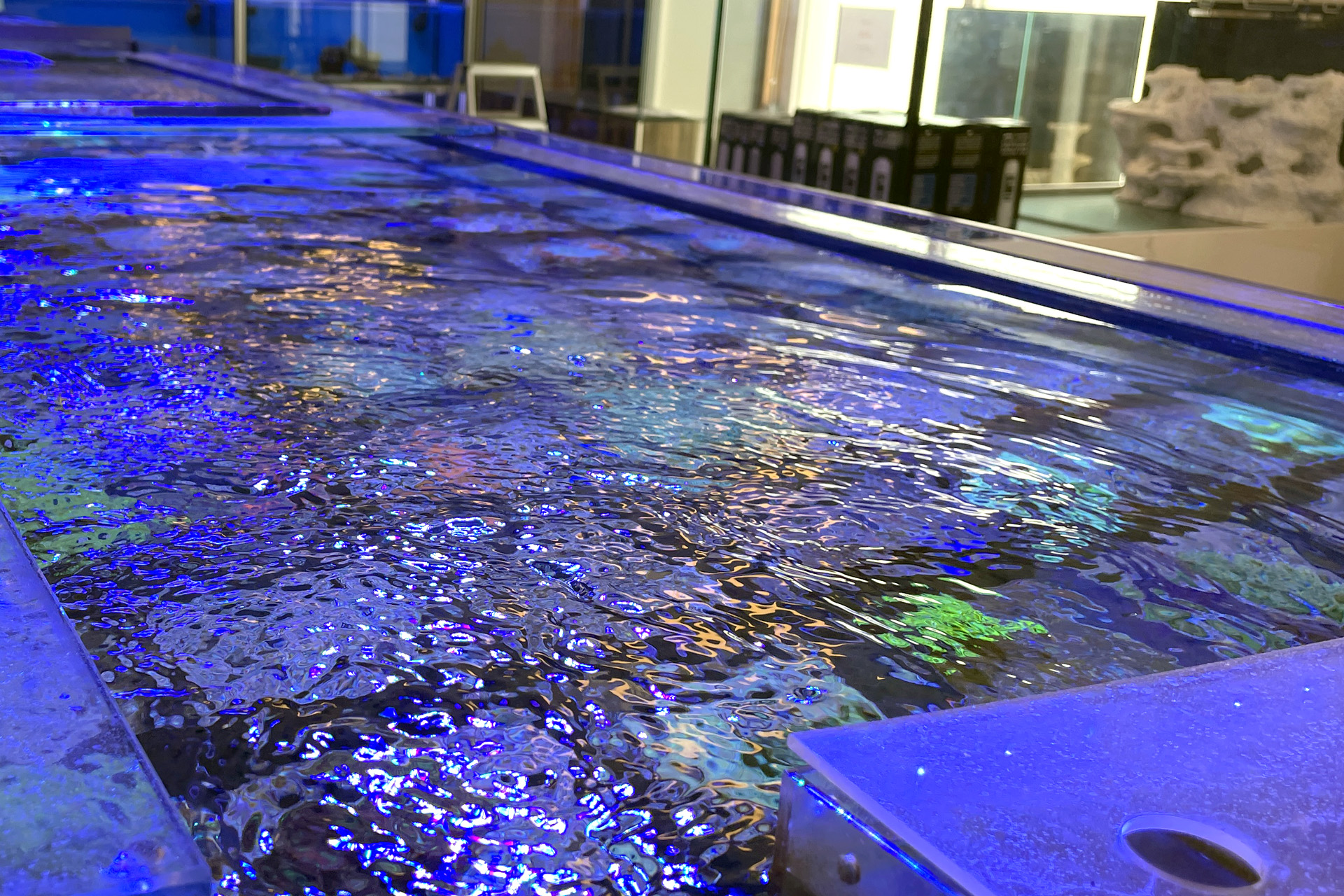 finale Umzug wird. Denn dann werden endlich Fachgeschäft und Versandhandel um selben Platz sein. Auf Einladung von Michael Schinhammer hatten wir am 10 Mai noch ein letztes Mal die Chance einen Blick in die alten Räume in Neumarkt werfen zu können. Ein letzter Blick in den Verkaufsraum, das 5-Meter-Becken und die Verkaufsanlagen, bevor alles nach Hohenburg umzieht. Parallel war ja die Herrichtung der neuen Räume schon in vollem Gange. Alles was neu zu bauen war oder nicht unbedingt für das bestehende Geschäft benötigt wurde, war bereits mitten im Umzug. Vielen Dank auf jeden Fall an Michael, dass er sich die Zeit genommen hat für einen sehr angenehmen Aufenthalt bei PlanktonPlus und für den Gedankenaustausch zu den bestehenden und der Gestaltung der neuen Räume. Hier jetzt für euch noch einmal letzte Eindrücke aus den alten Räumen Im Zwiesel 1 in Neumarkt. Imk Zentrum stehr die große Korallenanlage. An der großen Fensterseite einige Systemaquarien zur Ansicht. An den gegenüberliegenden Seiten zum Eingang befand sich zum einen die Fischanlage und zum anderen das große 5-Meter-Becken. Wenn man vom Eingang am Verkaufstresen vorbei geht, kann man sich einen guten Überblick über das Trockensortiment verschaffen.