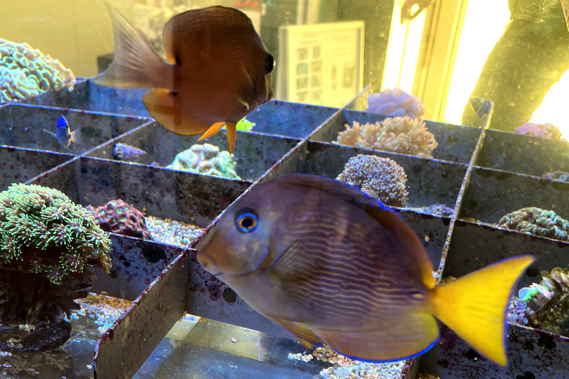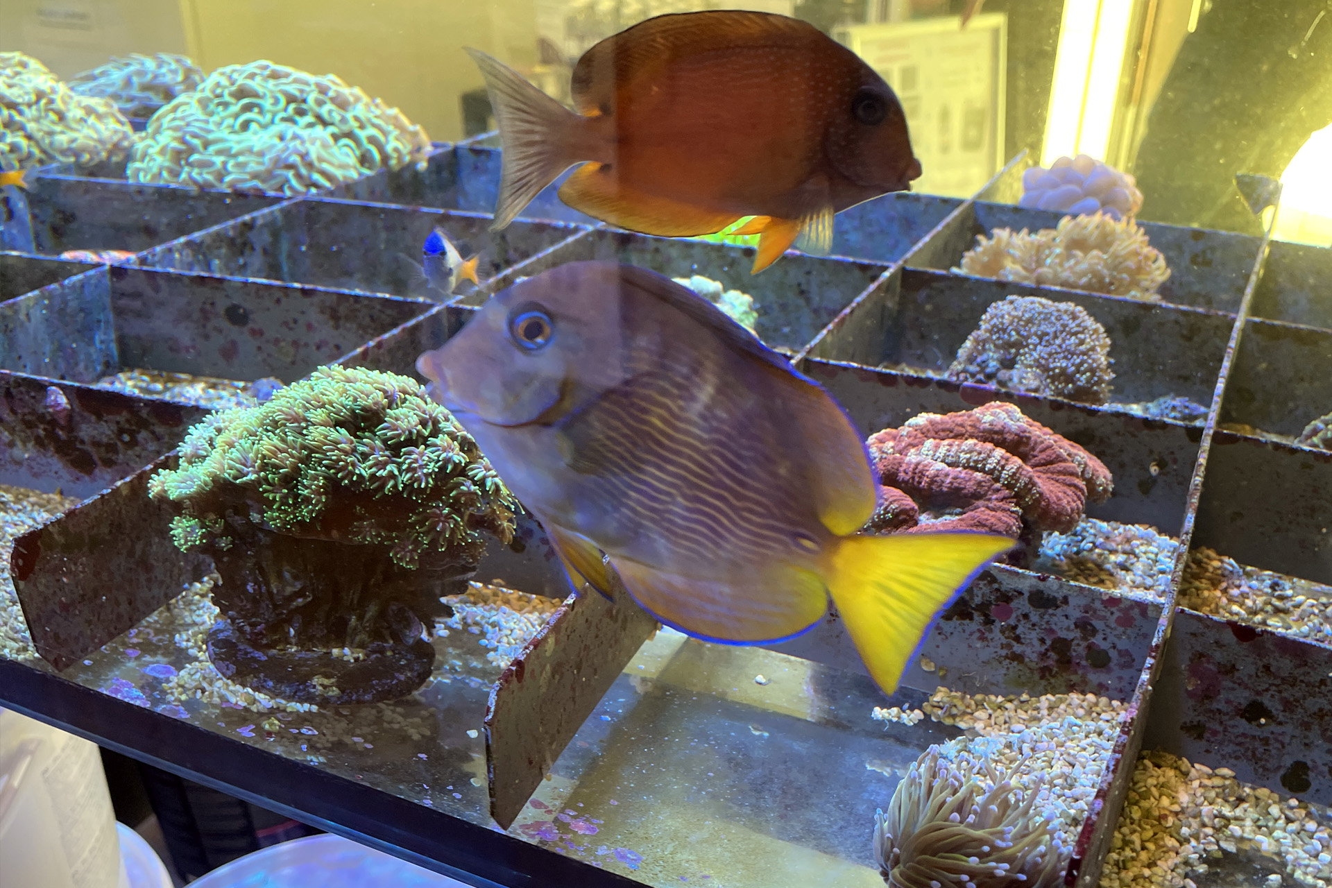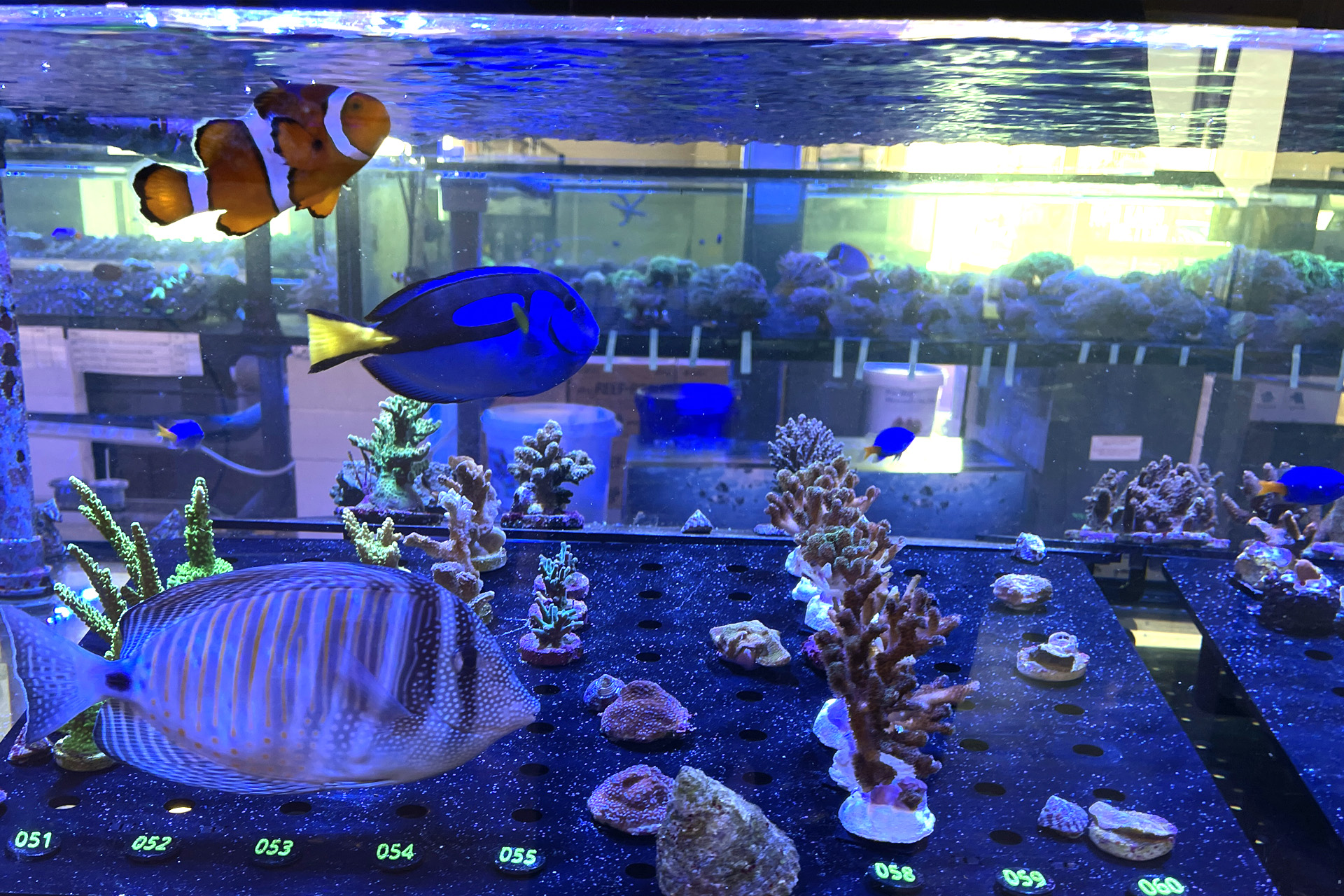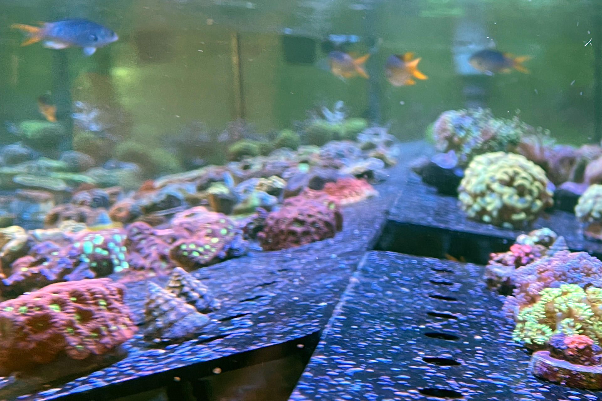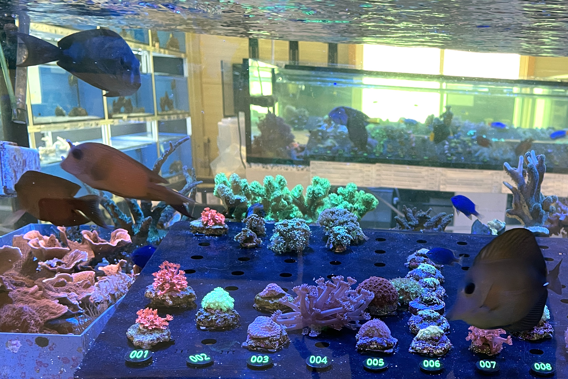 finale Umzug wird. Denn dann werden endlich Fachgeschäft und Versandhandel um selben Platz sein. Auf Einladung von Michael Schinhammer hatten wir am 10 Mai noch ein letztes Mal die Chance einen Blick in die alten Räume in Neumarkt werfen zu können. Ein letzter Blick in den Verkaufsraum, das 5-Meter-Becken und die Verkaufsanlagen, bevor alles nach Hohenburg umzieht. Parallel war ja die Herrichtung der neuen Räume schon in vollem Gange. Alles was neu zu bauen war oder nicht unbedingt für das bestehende Geschäft benötigt wurde, war bereits mitten im Umzug. Vielen Dank auf jeden Fall an Michael, dass er sich die Zeit genommen hat für einen sehr angenehmen Aufenthalt bei PlanktonPlus und für den Gedankenaustausch zu den bestehenden und der Gestaltung der neuen Räume. Hier jetzt für euch noch einmal letzte Eindrücke aus den alten Räumen Im Zwiesel 1 in Neumarkt. Imk Zentrum stehr die große Korallenanlage. An der großen Fensterseite einige Systemaquarien zur Ansicht. An den gegenüberliegenden Seiten zum Eingang befand sich zum einen die Fischanlage und zum anderen das große 5-Meter-Becken. Wenn man vom Eingang am Verkaufstresen vorbei geht, kann man sich einen guten Überblick über das Trockensortiment verschaffen.
