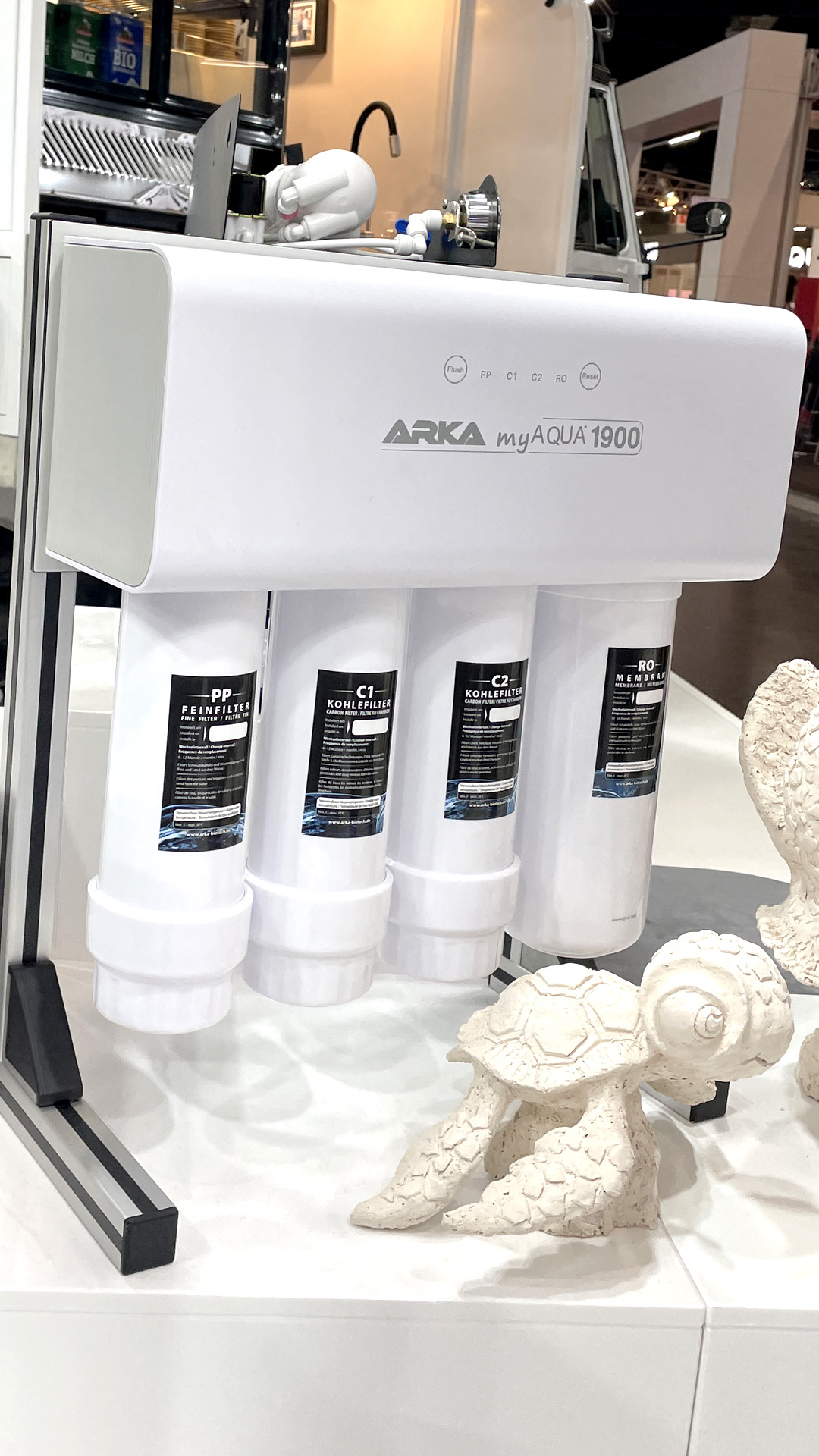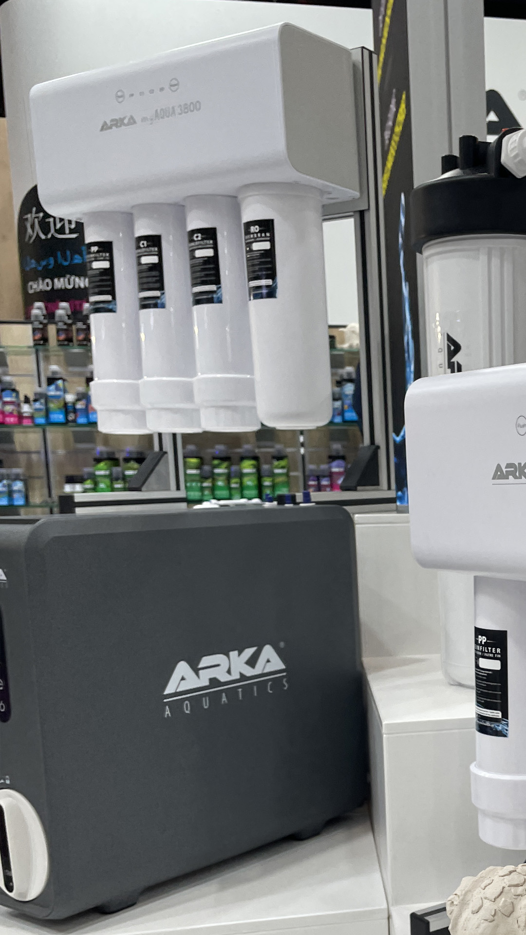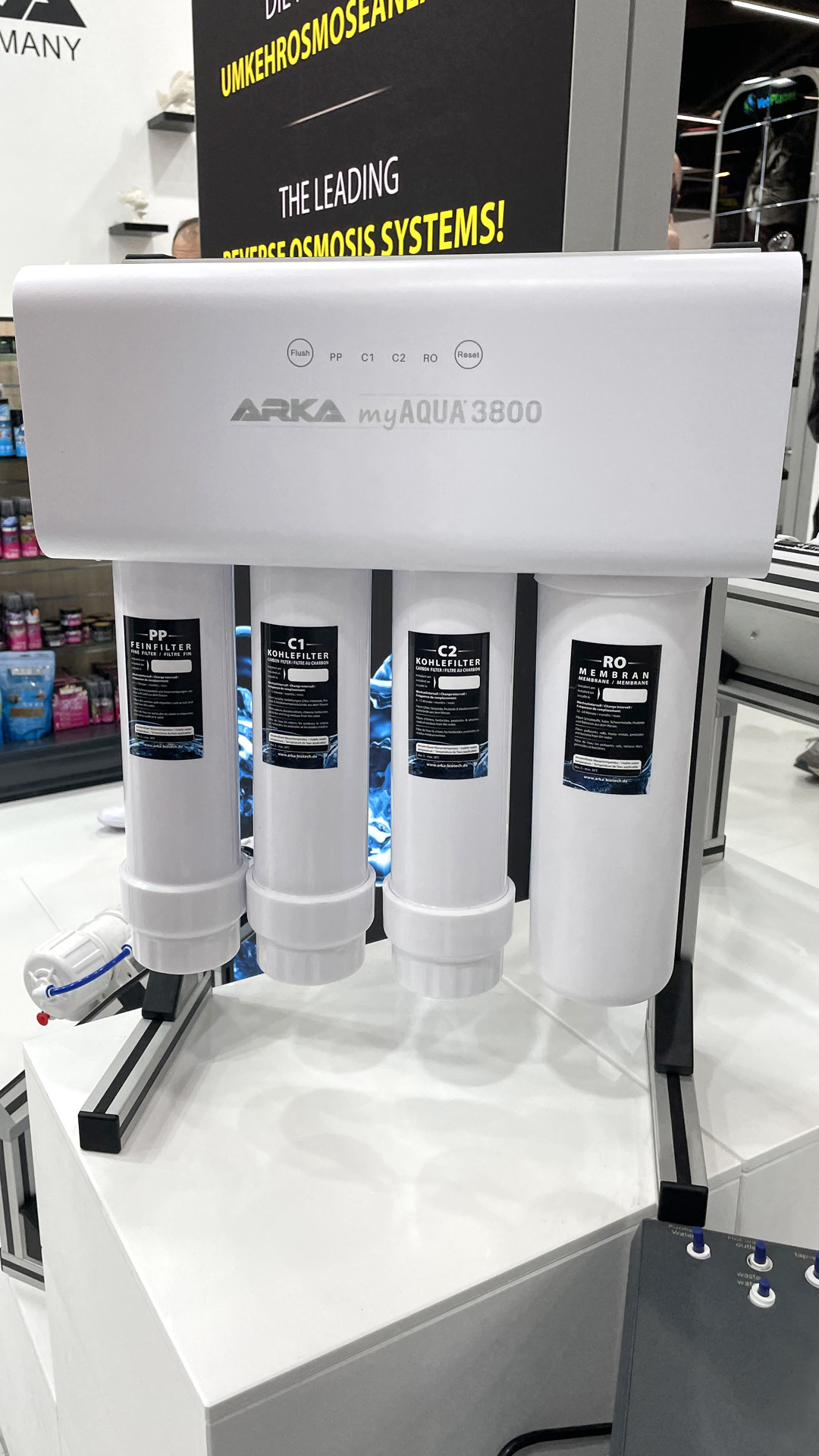 Natürlich hatte Arka so einiges mitgebracht, so dass der Stand auch mit den Produkten gut gefüllt war. Auf dem Stand waren dekorativ eine ganze Reihe von Riffkeramiken zwischen den anderen Produkten ausgestellt.