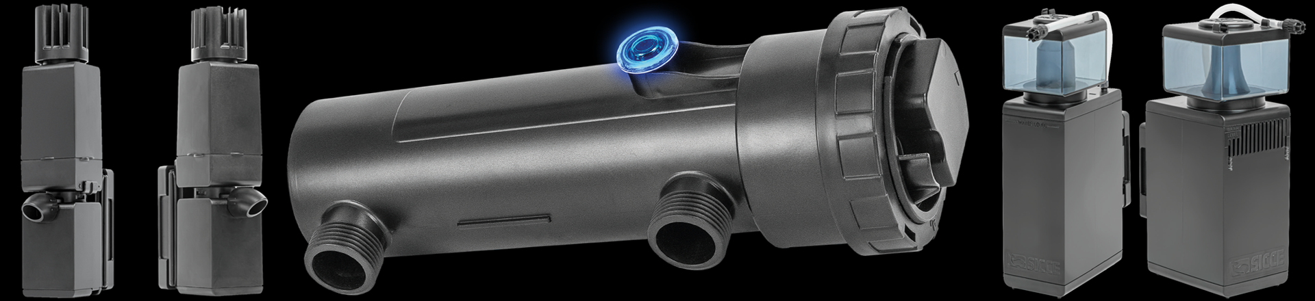 (2) Ebenfalls erhältlich sind jetzt die neuen UV-C Anlagen aus dem Hause Sicce. Hier wird zwischen einer Serie für die Aquaristik und einer Teichserie unterschieden. Erhältlich sind die Geräte jeweils in einer 110V und in einer 230V Variante.
