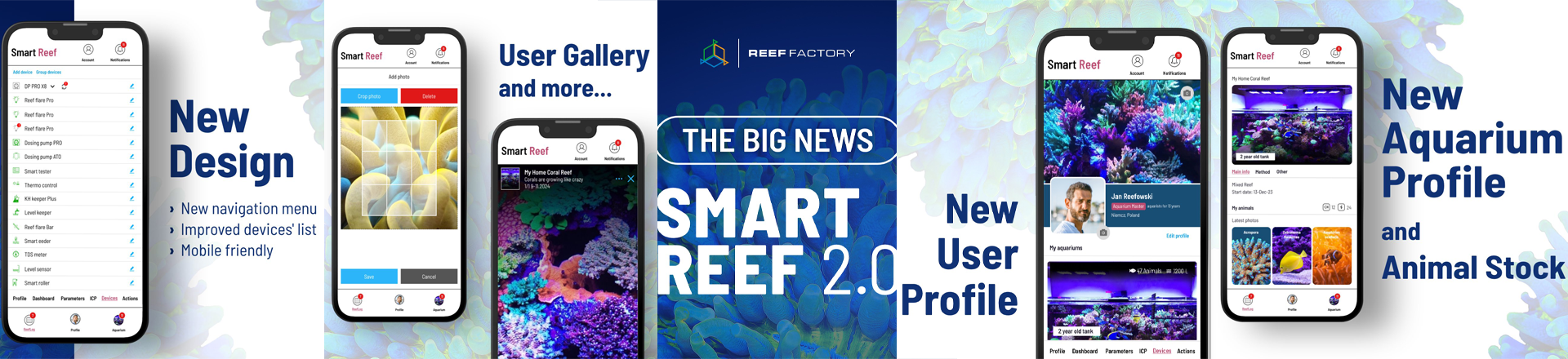 ...dann ist die Smart Reef App der Dreh- und Angelpunkt des gesamten Riff-Aquariums. Sie steuert und kontrolliert die Technik im Aquarium. Auch die Ergebnisse der ICP-Wassertests aus dem Labor direkt in die App übertragen. Jetzt stellt die Firma die neue Version 2.0 dieser App in neuem Gewand vor. Insgesamt werden hier mehr als 20 Smarte Produkte zusammengeführt. Nach ca.2Jahren Entwicklungszeit, soll die neue Version in 2 Wochen ausgerollt werden. Neben dem verbesserten Design, der einfacheren Navigation, dem optimierten „look & feel“, der verbesserten Geräteliste, der integrierten Liste von Einwohnern des Beckens kann ein Profil des Aquariums mit Fotos und einer Beschreibung der Pflegemethode angelegt werden. Eine Möglichkeit zum Teilen all dieser Infos zum eigenen Aquarium steht bereits in den Startlöchern.